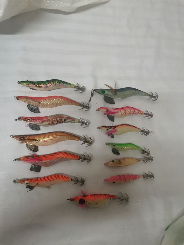 Detalles del productoSe venden 13 señuelos de pesca. . Son ideales para la pesca. Están usados y con signos de uso pero en buen estado.. presentan una variedad de colores y diseños.... En una foto e puesto un señuelo que es el que está un poco deteriorado..