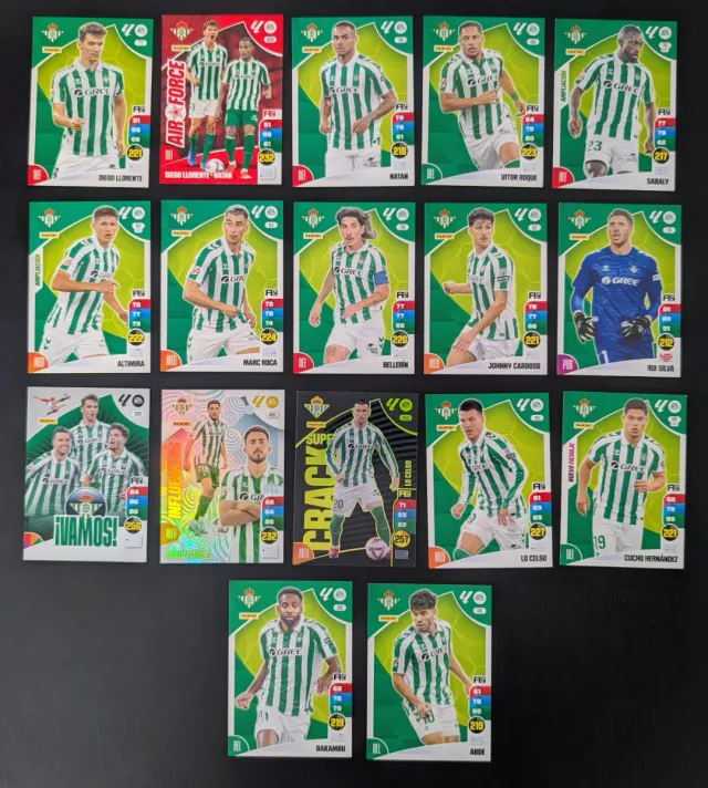 Detalles del productoLote de 17 cromos de la Liga 2024-2025 del Real Betis.