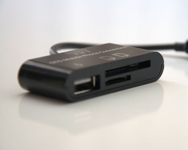 (17) Lector de tarjetas SD y microSD con conexión Micro USB - Lector de tarjetas SD. - Lector de tarjetas microSD. - Puerto USB adicional.