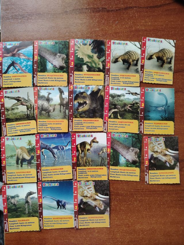 Detalles del productoCromos de dinosaurios en buen estado. Son 18 cromos en total, ideales para coleccionistas. - Algunos cromos muestran señales de uso. - Perfectos para añadir a tu colección.