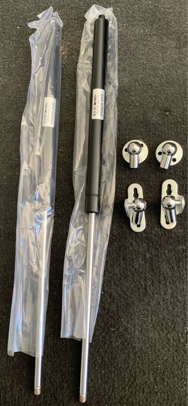 Detalles del productoSe venden dos amortiguadores de gas para puerta, junto con sus soportes de montaje. Son fuertes.