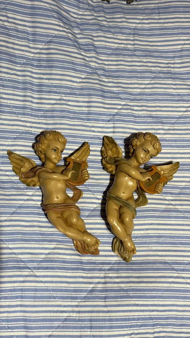 Detalles del productoSet de dos figuras decorativas de ángeles tocando la lira. Son ideales para añadir un toque clásico a tu hogar.