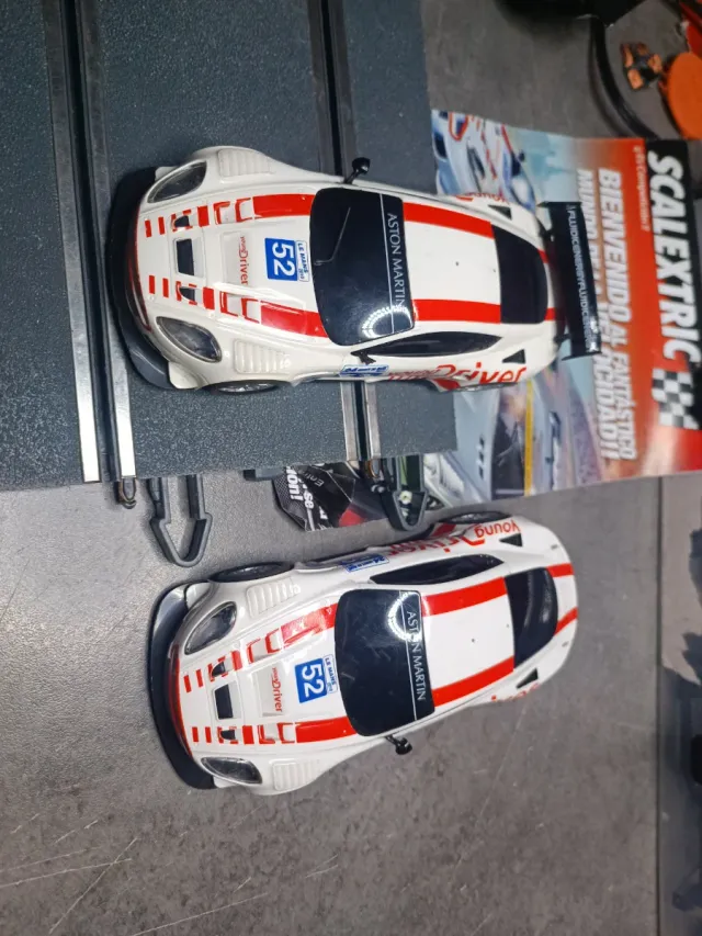 Detalles del productoDos coches de slot Aston Martin de Scalextric en escala 1/32.