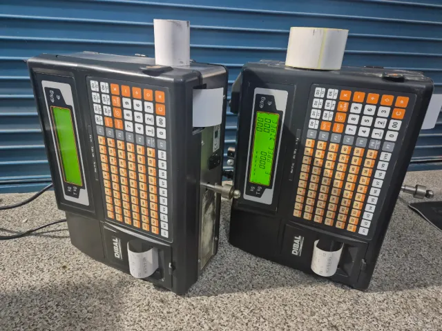 2 Basculas colgantes dibal serie L con 2 impresoras ticket y pegatinas