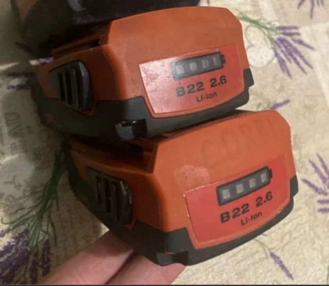 Detalles del productoSe venden dos baterías Hilti B22 de 2.6 amperios, de iones de litio. Están en buen estado, aunque muestran algunas señales de uso.