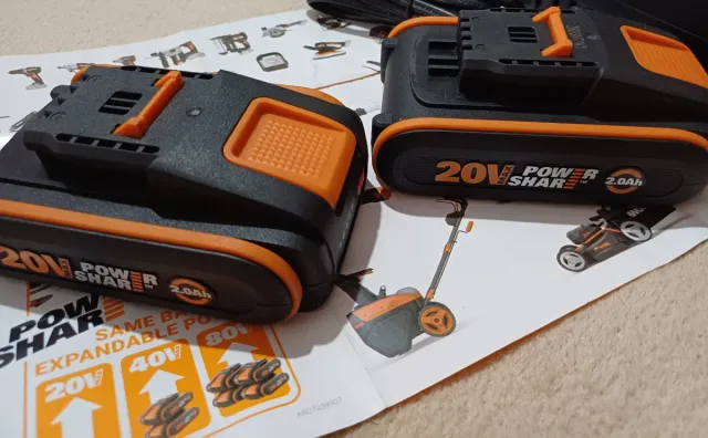 Conjunto de dos baterías recargables Worx Power Share. - Voltaje: 20V - Capacidad: 2.0Ah - Compatibles con el sistema Power Share de Worx.