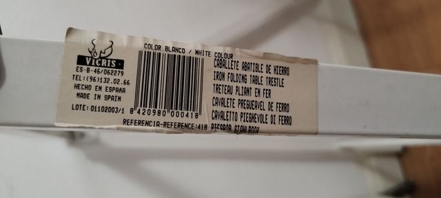 Detalles del producto2 caballetes abatibles de hierro en blanco marca VICRIS referencia 418. 73 centímetros de alto, 63 centímetros de ancho, carga 100 kg en perfecto estado. El precio es por los dos.