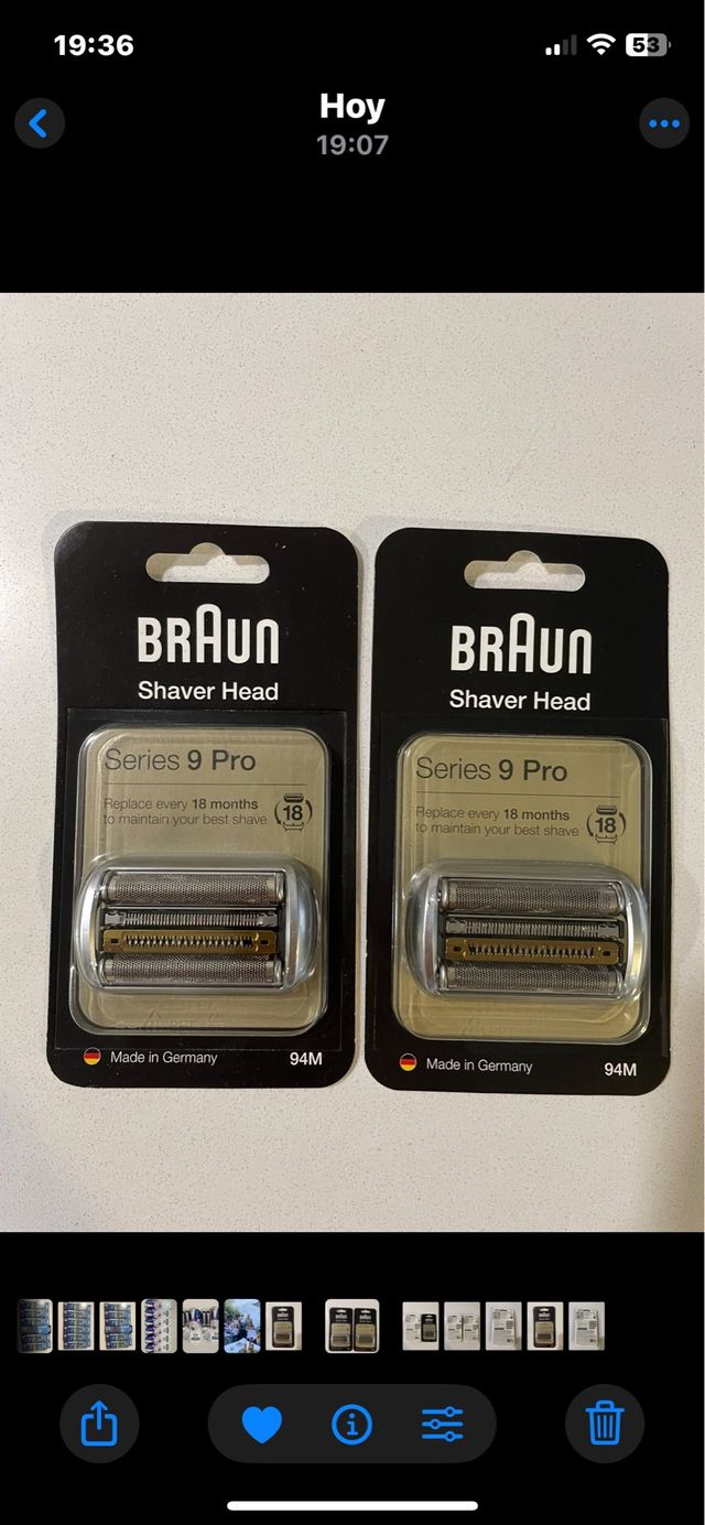 Se venden dos cabezales de recambio para afeitadora Braun Series 9 Pro. - Compatibles con Series 9 Pro. - Fabricados en Alemania. - Modelo 94M.