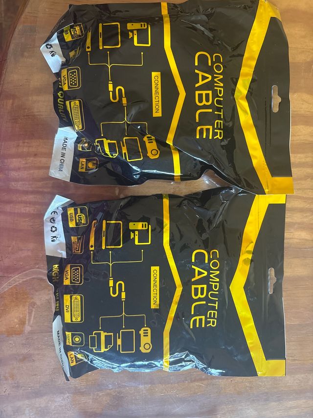 Detalles del productoVendo dos cables de conexión para ordenador, nuevos a estrenar. Son negros y vienen en sus respectivos paquetes.