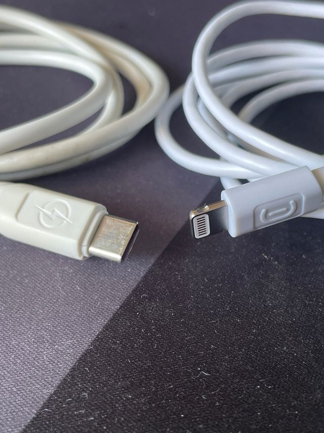 Detalles del productoVendo dos cables, uno para iPhone y otro USB-C. Ambos son blancos y están en buen estado.