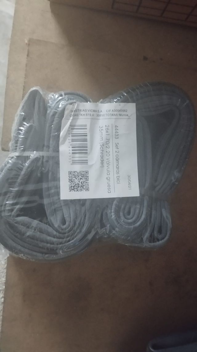 Set de 2 cámaras de aire para bicicleta. - Medida: 26x1.70/2.20. - Válvula gruesa (Schrader) de 35mm. - Marca: VICMAS.A. - Fecha de fabricación: 30/04/21.