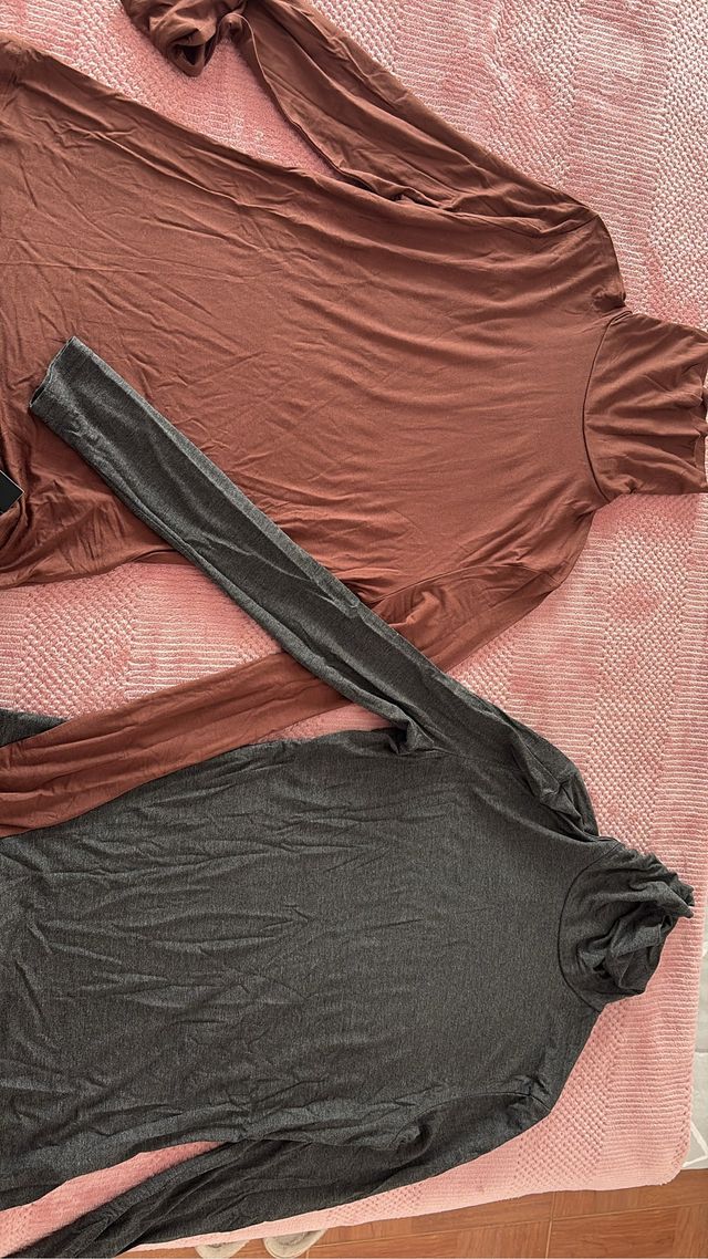 2 Camisetas Cuello Alto Marrón y Gris