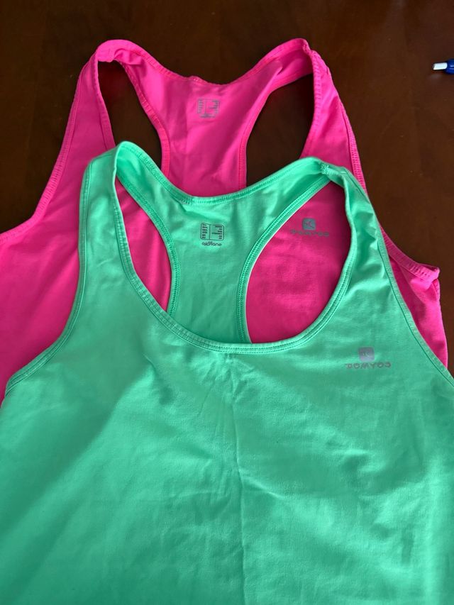 2 Camisetas Tirantes Domyos Verde y Rosa