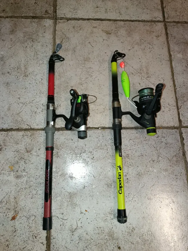 Detalles del productoSe venden dos cañas de pescar completas, listas para usar.