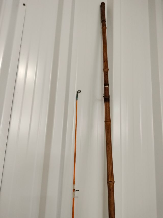 Detalles del producto1 caña de pescar antigua una de bambú y otra de madera. Ideales para coleccionistas o amantes de la pesca tradicional. -