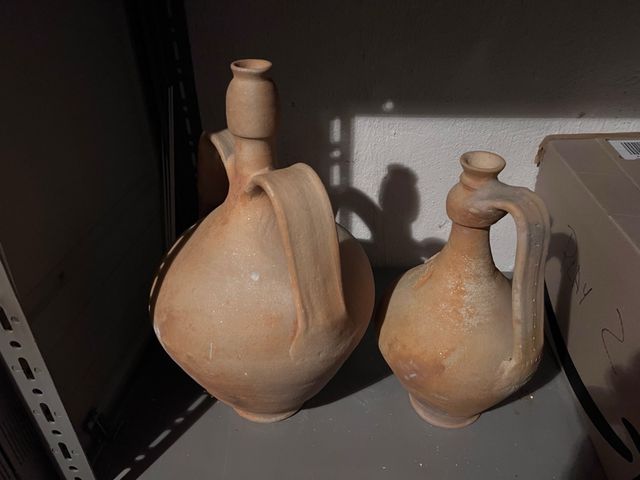 Conjunto de dos cántaros de barro, perfectos para decoración rústica o coleccionismo. - Material: Barro cocido. - Diseño tradicional.