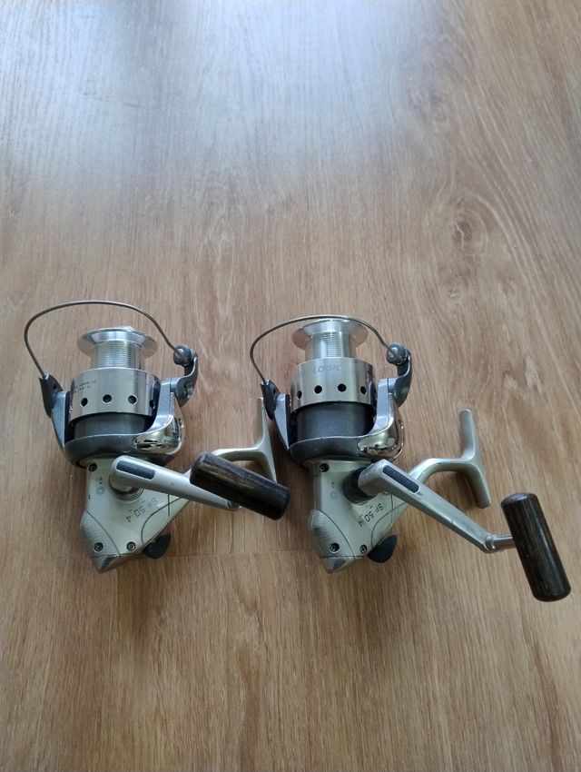 2 carretes de pesca Sp-50 marca geologic (decathlon). Son tamaño 5000, ideal para la pesca a fondo de grandes ciprínidos. Gran capacidad de hilo.