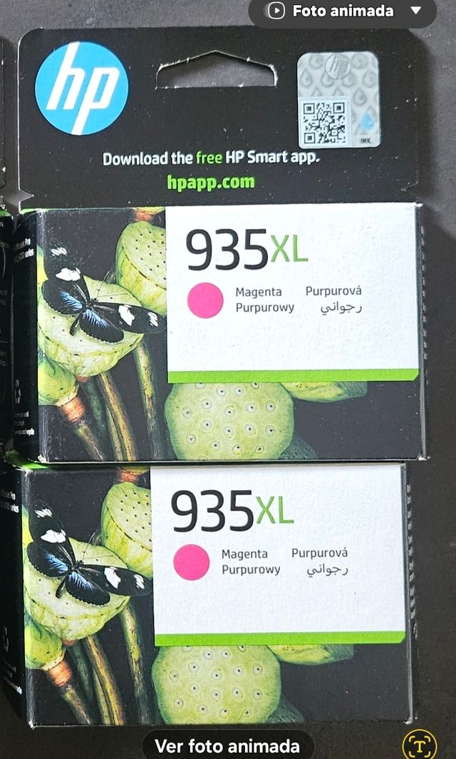 Se vende 2 Cartucho de tinta HP 935XL Magenta. - Modelo: 935XL - Color: Magenta - Tipo: XL (alto rendimiento) Caducidad hasta 10/2026. Originales, sin abrir.