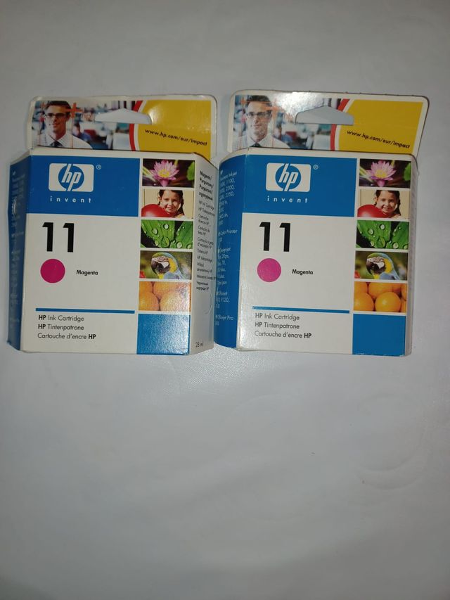 Detalles del productoSe venden dos cartuchos de tinta HP 11 en color magenta. Ideales para impresiones vibrantes. Por separado cada unidad 25 €