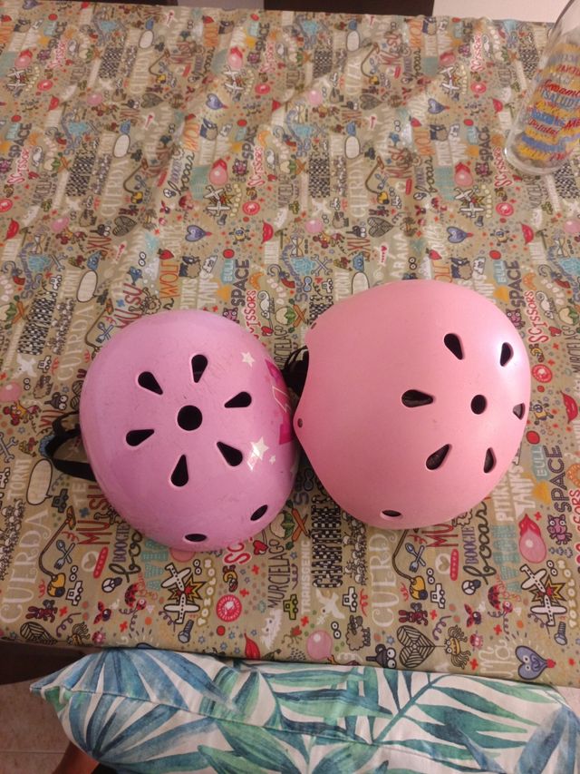 Dos cascos para bicicleta, rosas y en buen estado. Ideales para niñas. - Son dos cascos de color rosa. - Se aprecian en buen estado en las imágenes.
