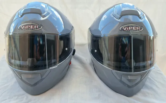 Detalles del productoLote compuesto por 2 cascos de moto marca ViPER helmets.tallas XS:53-54 y S:55-56 Bluetooth con 2 altavoces estéreo HD de alta calidad.ambos color gris.cascos multifuncionales que combinan diversas características avanzadas para mayor comodidad y seguridad durante la conducción.Estos cascos tienen un diseño abatible o modular, lo que permite a los motociclistas cambiar fácilmente entre un casco abierto y uno integral según su uso.