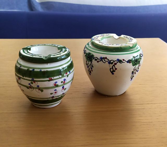 Detalles del productoConjunto de dos ceniceros vintage de cerámica, con un diseño artesanal tunecino.