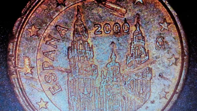 Moneda de 2 céntimos de euro de España, acuñada en el año 2000. Torre de la catedral cortada. - Año: 2000 - País: España - Valor: 2 céntimos