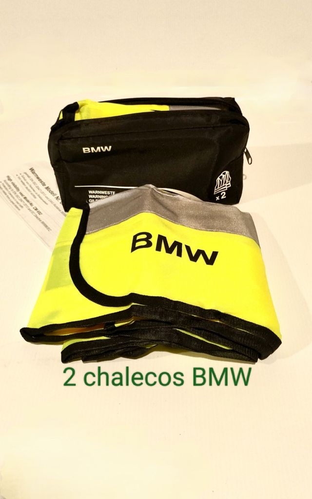 Nuevo sin usar, set de 2 chalecos reflectantes coche o moto original BMW en su funda.