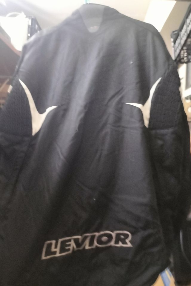 Detalles del productoChaquetas para moto una de ellas de la marca Levior. De color negro con detalles en blanco.