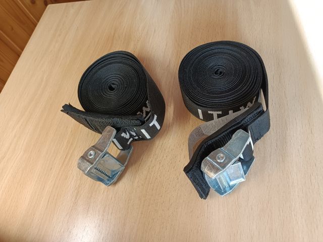 Detalles del productoVendo dos cinchas nuevas para el transporte de tablas de surf. Están hechas para asegurar tu tabla durante el traslado en coche, pudiendo llevarlo en el techo bien asegurado.