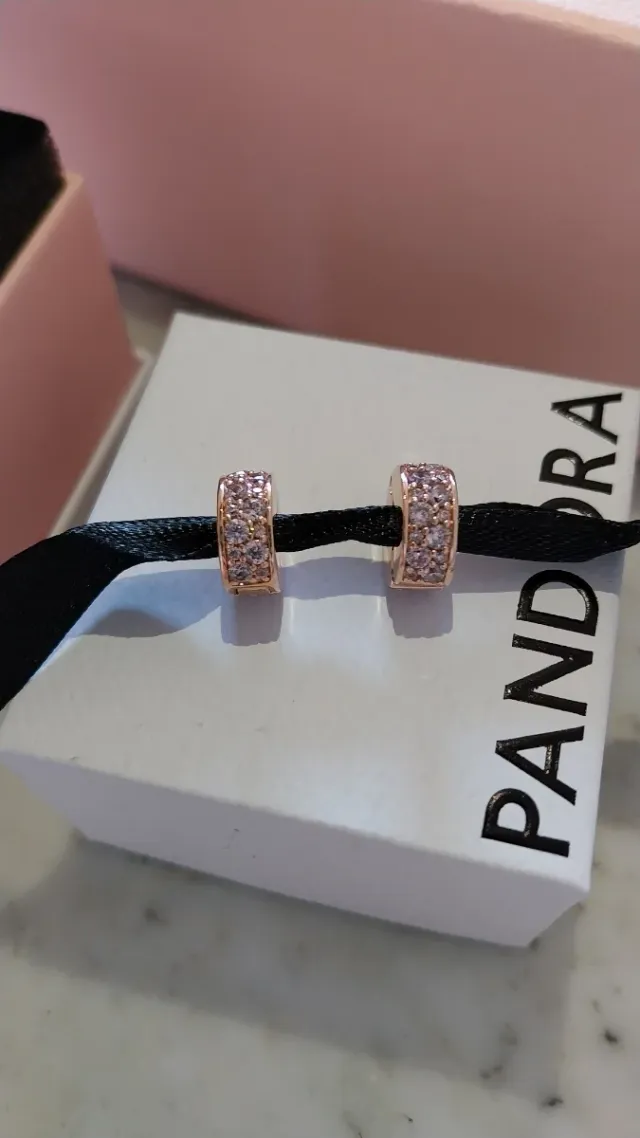 2 Charm Pandora de Clip Pavé Rosa Chapado en Oro