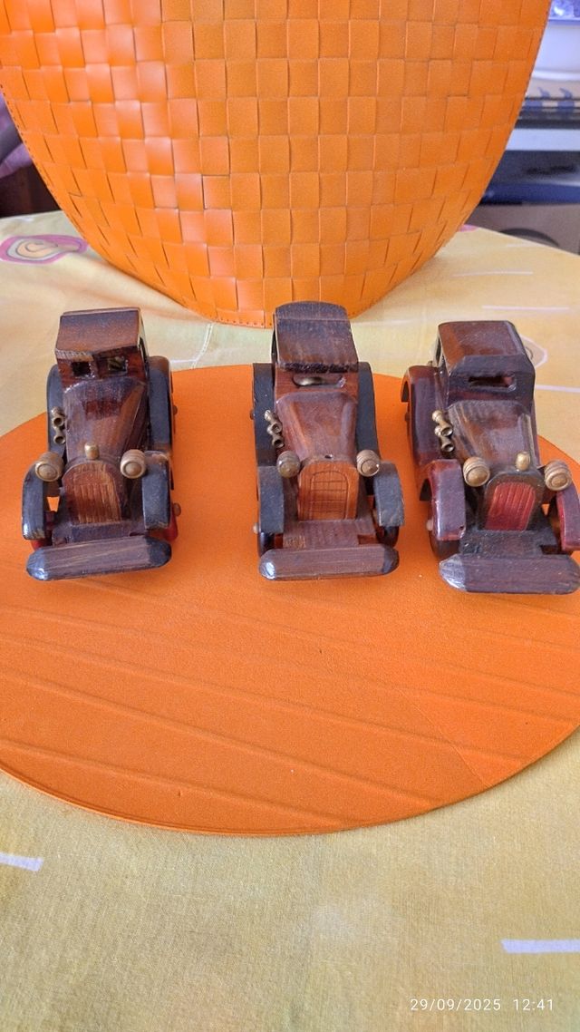 Preciosos coches clásicos hechos de madera. Ideal como pieza decorativa. - Diseño detallado de coche antiguo. - Material: Madera.
