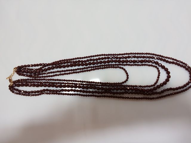 2:Collares largo de cuentas marrones y doradas