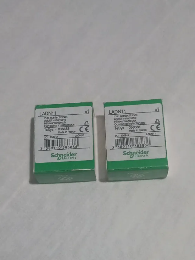 Dos bloques de contacto instantáneo Schneider LADN11. - Modelo: LADN11 - Marca: Schneider Electric - Tipo: Bloque de contacto instantáneo - Fabricado en Francia