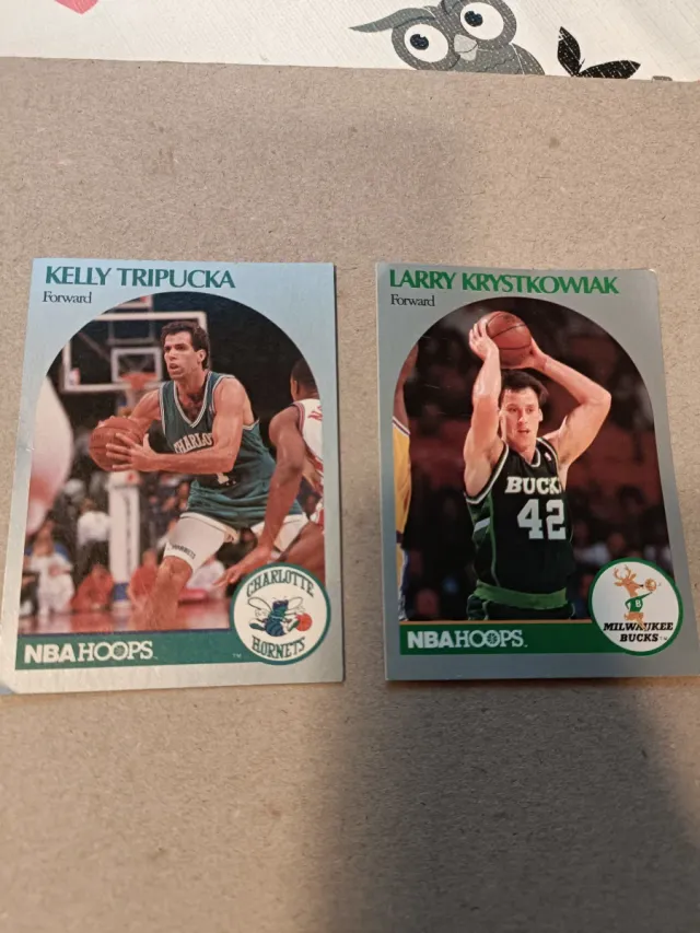 Detalles del productoDos cromos de la colección NBA Hoops de 1990. Incluyen a Kelly Tripucka y Larry Krystkowiak.