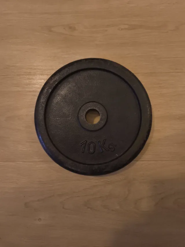 Se venden dos discos de pesas de la marca QUINDO. Para barras de diámetro 30mm tipo SALTER. - Cada disco pesa 10 kg. - Color negro. - Diámetro 30mm. - Hierro fundido