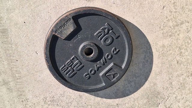 Disco de peso Domyos de 10 kg, ideal para entrenamientos. - Diámetro de 28 mm. - Diseño robusto.