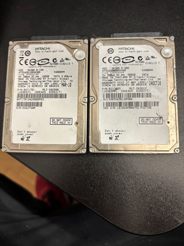 2 Discos Duros Hitachi 2.5 500GB y 160GB
