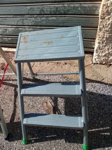 escaleras tipo banqueta,a 12€ plegables y fáciles de guardar. gris.