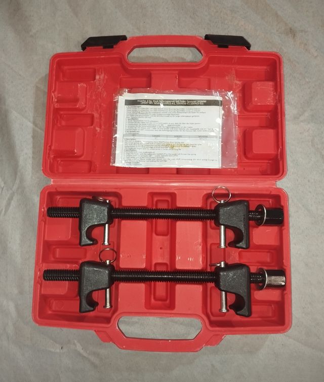 Detalles del productoVendo juego de 2 extractores de muelles para suspensión. Están nuevos, se compraron para cambiar los muelles de un coche y al final fue al taller, no llegaron a utilizarse. Se entregan con su maletín y con las instrucciones. Comprado el Enero de 2025. Tal cual se ven las fotos.