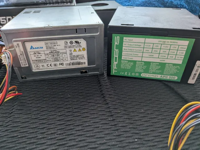 Se venden dos fuentes de alimentación, una de la marca Delta y otra de Tacens. - Fuente Delta: Modelo RAA, 500W. - Fuente Tacens: Modelo APII 500, 500W.