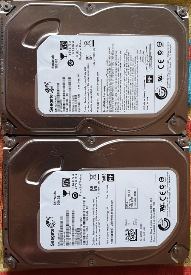 Dos discos duros Seagate Barracuda de 500 GB en buen estado. - Se venden juntos. - Modelo Barracuda. - Capacidad de 500 GB cada uno.