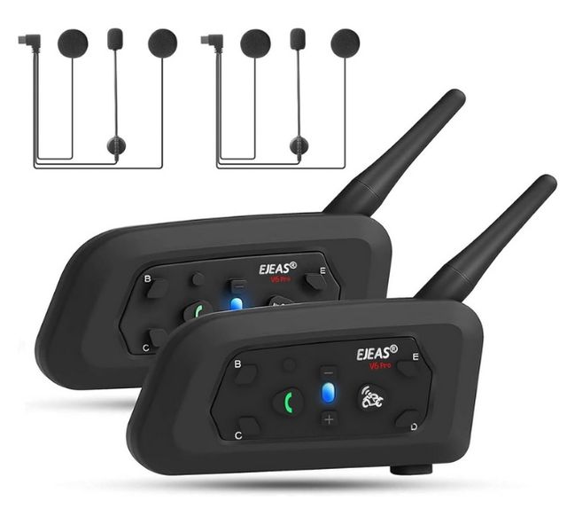 Detalles del productoPack de 2 intercomunicadores para casco de moto por bluetooth. Distancia de funcionamiento de hasta 800 metros. Bateria recargable de 850 mAh con autonomia de 18h en modo comunicacion, 25 horas en modo musica y 260 horas en modo espera. Permite conexion de hasta 6 intercomunicadores a la vez. Conectividad con telefonos, GPS y otros dispositivos con bluetooth. Modelo impermeable con proteccion IP67. Tecnología avanzada de reducción de ruido CVC para eliminar el eco y el ruido ambiental. Incluye 2 intercomunicadores, accesorios y manual. Realizamos envios por Wallapop y envios contrareembolso. Producto nuevo con 2 años de garantia.