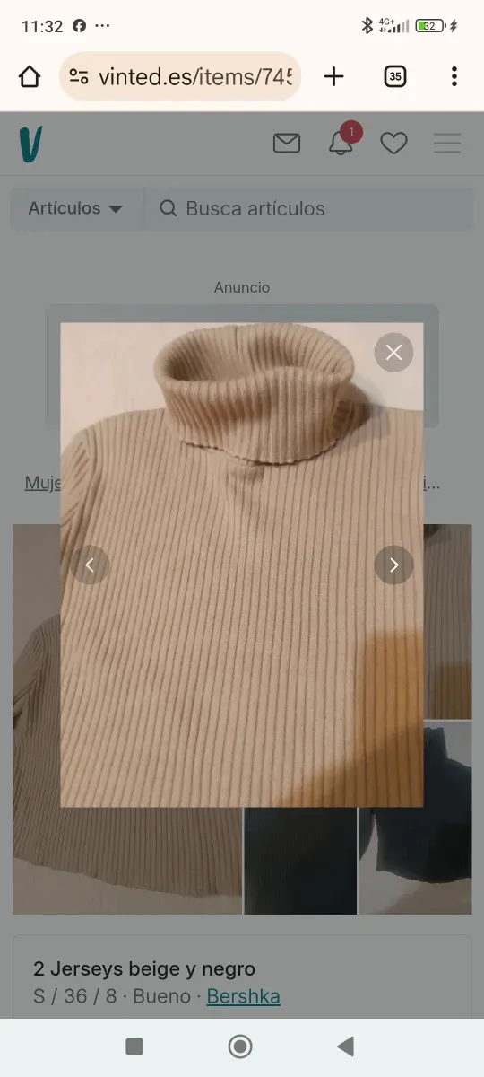 Como nuevo · S / 34-36 / 44-46 · Bershka · Beige y Negro