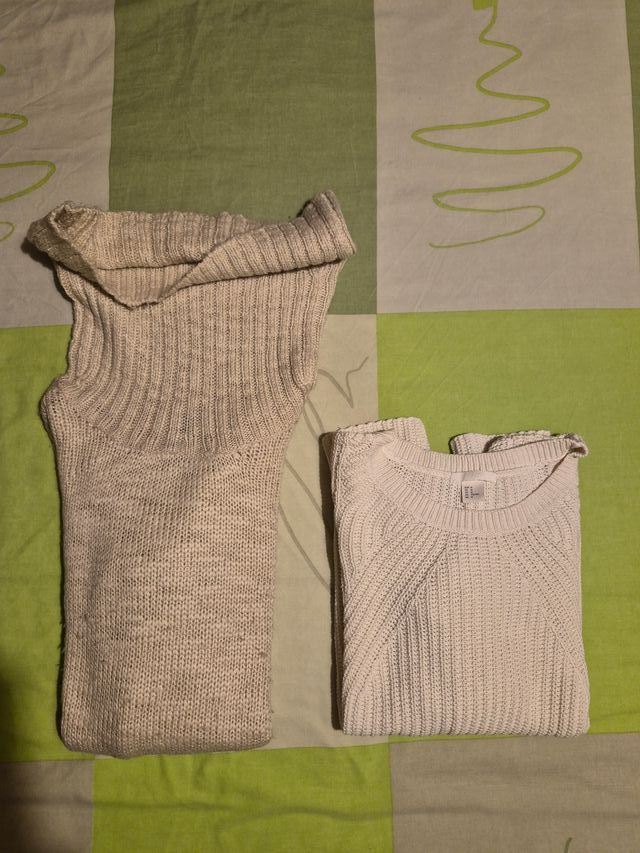 2 Jerseys H&M crudo cuello alto y cuello redondo