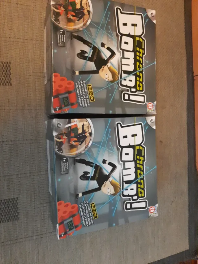 Se venden dos juegos de mesa Chrono Bomb. - Incluye misión para desactivar la bomba. - Edad recomendada: 6+ años. - Para 1+ jugadores.