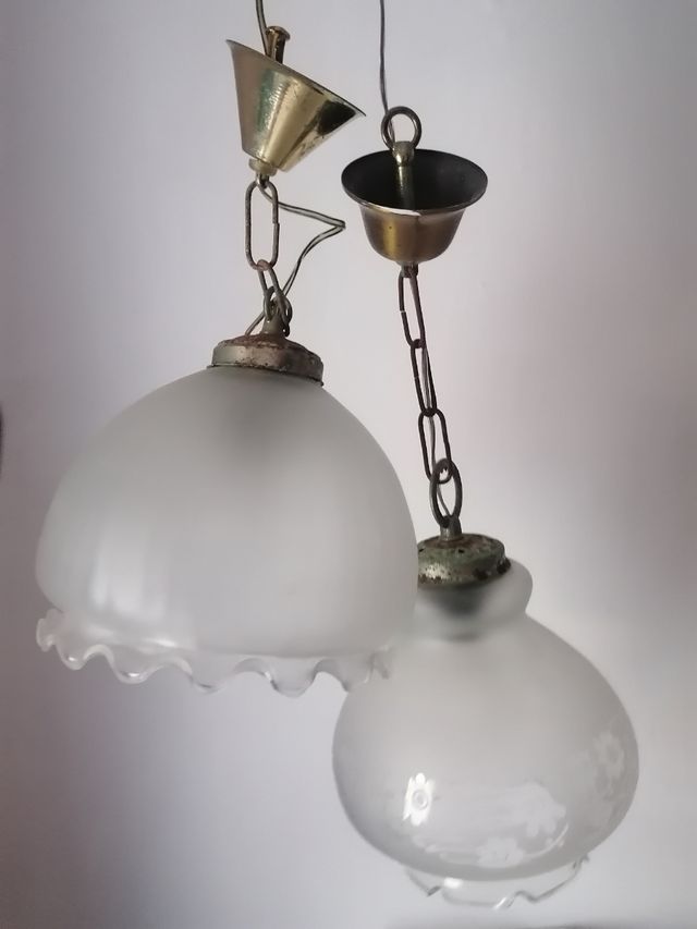 2 Lámparas Colgantes Retro Cristal Metal