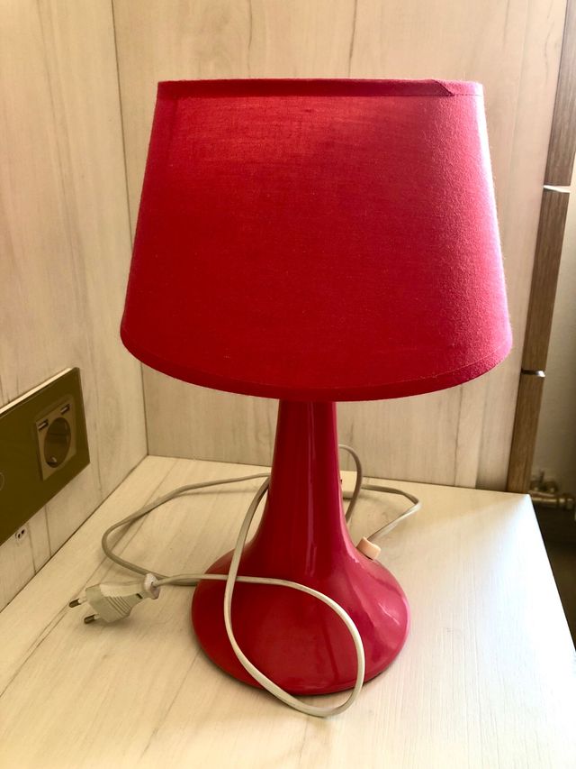 Lámparas de mesilla color rosa de Ikea. En buen estado de conservación. Funcionan correctamente. 34 cm de altura.