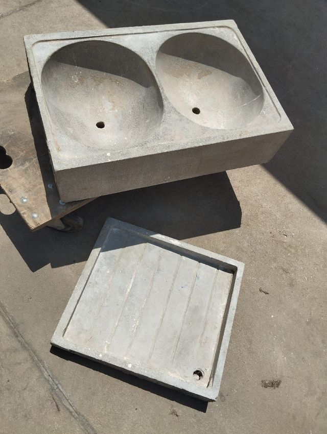 Detalles del productoSe venden dos lavabos antiguos de piedra, uno doble y otro individual, con sus respectivos desagües. Son de color gris claro y muestran señales de uso. Incluyen también dos piezas adicionales que parecen ser tapas o bases. Ideales para un proyecto de restauración o decoración con estilo rústico.