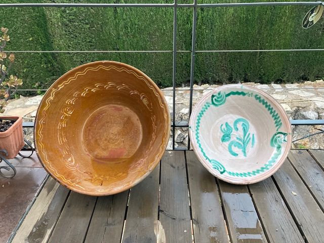 Buen estadoDetalles del productoLebrillos antiguos de finales del s XIX principios del XX. Usados en las matanzas y como utensilios de cocina. El color miel mide 65 cms. de diámetro el verde 53 cms